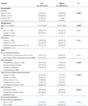 Table 2. Demographic, sociopersonal and work variables that influence the attitude towards organ donation in non-medical hospital staff in Spain and Latin America