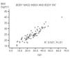Figure 2. Correlation (Pearson) between body mass index and total fat in 77 haemodialysis patients.