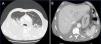 In the post-operative period, the patient developed signs of hyperhydration and started haemodialysis. Hypoalbuminemia and signs of hyperhidration gradually improved, but he maintained severe proteinuria. When clinical euvolemia was achieved, a right pleural effusion persisted. A CT scan was performed, revealing a disseminated neoplasm (Figure 2). A pleural exudate without malignant cells was drained. Tumor markers Ca 19.9 (95.2U/L, normal <27U/L) and neuron specific enolase (NSE) (96.6U/L, normal <15.2U/L) were elevated.