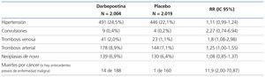 Las principales diferencias entre los dos grupos fueron una mayor tasa de trombosis venosa y arterial en el grupo de darbepoetina y una mayor mortalidad por cáncer en aquellos pacientes tratados con darbepoetina con antecedentes de neoplasia (ver tabla 2).