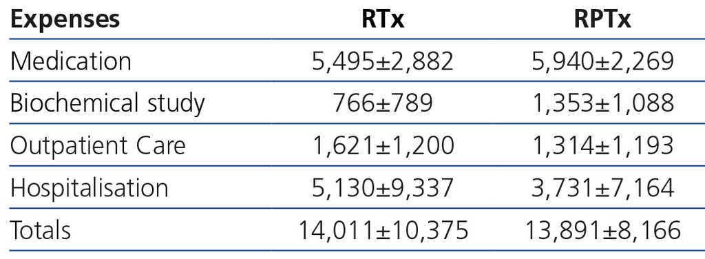 In the transplantation section, the costs between the two methods (RTx and RPTx) were not majorly different, suggesting that RPTx does not entail a higher cost from the sixth month onwards. Unfortunately, there are no other studies that allow us to make comparisons.