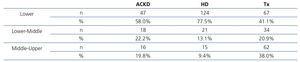 With regard to sociocultural status and access to transplantation, two extensive North American studies37,38 reported that the most disadvantaged minorities had fewer opportunities to receive a transplant, with a certain inequality being observed in access to these programmes. In our case, we also observed that patients who received a transplant had the best sociocultural profile and that those who were on HD had the worst profile, with the profile being intermediate in ACKD patients.
