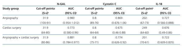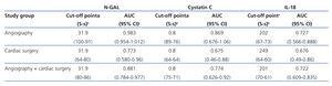 Table 4. Diagnostic capacity of the markers analysed for the detection of acute kidney injury in the different study groups