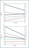 When we compare Cr-MTC quintiles as described in a previous study,9 we found that as in the control group (figure 2 A) the high transporters at baseline show a significant reduction in Cr-MTC by the first year (figure 2B) as compared with baseline. However, we should say that the patients in this study had baseline Cr-MTC levels that were higher than the historic group (11.7 ± 5.7 vs. 10.5 ± 5.3) and that the greatest reduction in peritoneal permeability was observed in patients with higher cr-MTC whereas, in patients in which the MTC was lower than 10, the peritoneal permeability remained practically unchanged.