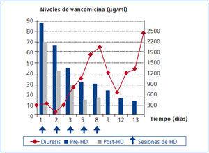 Figura 1. Evolución de los niveles de vancomicina y diuresis.