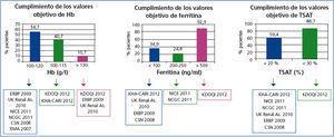 Diferentes sociedades científicas han realizado revisiones frecuentes de las recomendaciones para el tratamiento de la anemia en pacientes con enfermedad renal crónica (ERC) prediálisis (no-D), que incluyen valores objetivo de hemoglobina (Hb), ferritina e índice de saturación de la transferrina (TSAT). En el año 2005, la Agence Française de Sécurité Sanitaire des Produits de Santé recomendó unos valores objetivo de Hb entre 110-130 g/l1. En la guía KDOQI2006 (Kidney Disease Outcomes Quality Initiative) se recomienda no mantener intencionadamente Hb > 130 g/l y en el año 2007 recomendó un rango entre 110-120 g/l2. En 2007 la European Medicine Agency recomendó 100-120 g/l3 y en 2009 la guía ERBP (European Renal Best Practice) recomendó 110-120 g/l, sin superar el valor de 130 g/l4. La última actualización de la guía KDOQI2012 recomienda mantener una Hb entre 100-115 g/l5.