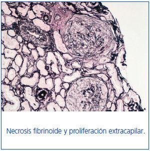 La glomerulonefritis extracapilar (GNE) se caracteriza por la presencia en plasma de autoanticuerpos o inmunocomplejos con capacidad patógena. Entre éstos se encuentran los anticuerpos antimembrana basal glomerulurar (Ac-anti-MBG), típicos de GNE tipo I y anticuerpos anticitoplasma de neutrófilos (ANCA), que se suelen presentar en la GNE tipo III1,2.