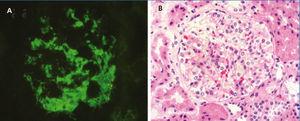 Two articles published in 1978 by independent groups,1,2 are considered by many authors to be the first descriptions of a glomerulopathy characterised by diffuse mesangial deposits of immunoglobulin M (IgM) in patients with severe proteinuria. However, four years earlier, a work had been published that described renal biopsies with glomerular deposits predominantly of IgM, but in patients with persistent or recurrent haematuria.3 Although controversial, IgM nephropathy (IgMN) is defined by its immunopathological characteristics: the presence of IgM as the only or dominant immunoglobulin, located in the mesangium and with global and diffuse distribution.1,2,4-18 Its histologic characteristics are highly variable, from a normal glomerular appearance, as in minimal change disease (MCD) to varying degrees of mesangial hypercellularity and focal segmental glomerulosclerosis (FSGS). Most recent publications on IgMN describe its clinical presentation as being characterised by nephrotic syndrome (NS) or severe proteinuria with varying prognosis and response to steroids;1,2,5,14,19-21 few authors describe cases of isolated haematuria.3,13,18
