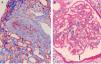 In patients with circulating antibodies, C4d deposits can be detected in the glomeruli, but not in the peritubular capillaries. In this case, C4d deposition should be assessed in paraffin sections, since after freezing peripheral C4d deposits can be found in normal glomeruli.83,84