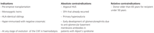 Table 1. Absolute and relative indications and contraindications for living-donor kidney transplantation