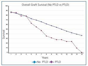 Figure 2. Overall Survival of Graft (no PTLD Versus PTLD)
