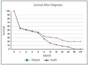 The curves for graft and recipient survival were calculated using Kaplan-Maier and the different comparisons between them with the log-rank test.