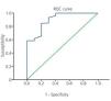 The summary results for the multiple logistic regression analysis are shown in the Table. The univariate analysis of factors associated with significant CAD revealed that 65% of patients with type 1 DM and 81.3% of patients with type 2 DM had significant coronary artery lesions, with no significant difference between these two groups (P=.279). We did not observe a significant difference based on the following variables: age (odds ratio [OR] =1.042; P=.182), female sex (OR=0.368; P=.188), family history of coronary disease (OR=2.933; P=.212), arterial hypertension (OR=1.917; P=.511), or LDL cholesterol levels (OR=1.018; P=.222). The only variables that were significantly associated with significant coronary artery disease were: dyslipidaemia (OR=10.857; P=.004), tobacco use (OR=7.778; P=.009), glycosylated haemoglobin (OR=9.523; P=.003), and total cholesterol (OR=1.040; P=.01). The latter variables were then included in the multiple logistic regression model. Dyslipidaemia and total cholesterol were excluded from the model (likelihood ratio =1.556, degrees of freedom [DF] =2). All variables had a linear scale. We evaluated all possible interactions which were not significant. No patients had a Cook distance greater than 1. The final result showed that the only variables significantly associated with CAD were: tobacco use (adjusted OR=8.341; P=.048) and percentage of glycosylated haemoglobin (adjusted OR=9.535; P=.006). For every 1% increase in the value of glycosylated haemoglobin, the risk that an asymptomatic diabetic patient with ESCKD will develop significant CAD is 9.525 times higher if all other variables are the same (for a 95% confidence interval, this difference would be 1.892-47.944). The ROC curve for this calculation is shown in Figure 2.