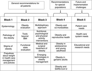The GIRO guidelines, though inspired by the Canadian guidelines published in 2020, include the most recent and relevant evidence in our field on the best management and treatment of adult obesity.8 With the primary objective of proposing a change of approach in the management of the disease, the guideline aims to promote the approach to obesity as a chronic and complex disease, to reject the misconception that obesity is a moral failing and the solely the patient’s responsibility, to understand that we must move forward by starting to talk about “obesities” instead of “obesity,” to promote the inclusion and use in clinical practice of valid health indicators for measuring obesity that are not based solely on body mass index (BMI), to incorporate precision medicine in its management, and to propose the need for a holistic approach and a multidisciplinary approach.