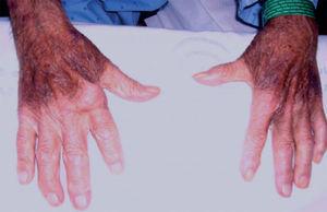 Figura 1. Manos de mecánico. Características del síndrome antisintetasa.