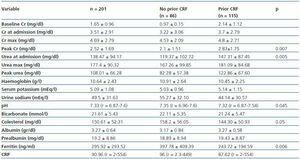 Table 3. Laboratory analyses for patients with ARF. Comparison between patients with prior normal renal