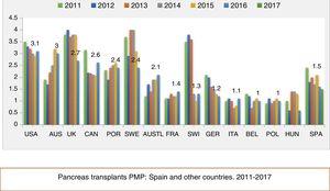 In light of this evidence, the pancreas transplant situation in Spain is paradoxical, with a declining activity. We could argue that it is declining worldwide, but in our case the rate of transplants per million population (PMP) is significantly lower than in a number of different countries in Europe, and in Australia, Canada and the USA, despite being Spain's world leadership in donation and in the transplantation of other solid organs (Fig. 1).