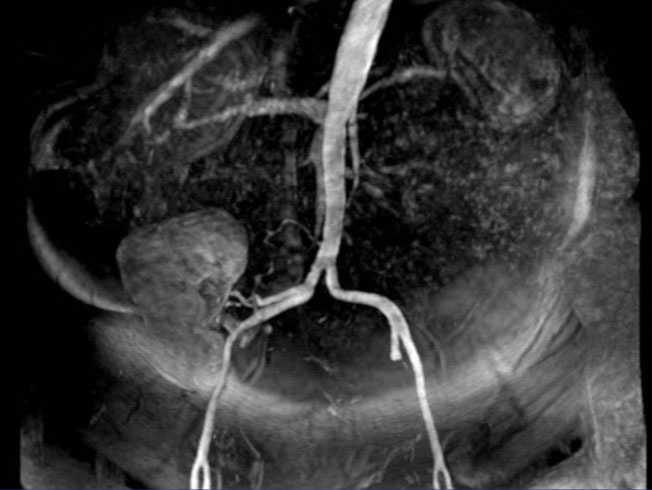 Following surgery, the blood pressure normalised and since then maintained around 120/80mmHg without drugs. In the postoperative imaging study (renal MRA) (Figure 2), normal kidney graft was observed with new vascularisation.