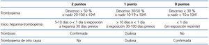 Tabla 1. Sistema de puntuación de las 4 T en sospecha de trombocitopenia por heparina