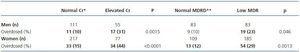 Table 2. Differences in overdosed patients according to normal or elevated creatinine and normal or low MRDR values