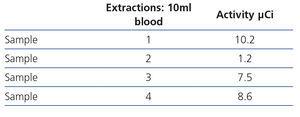 - Tables 4 and 5 display the radioactivity received by the haemodialysis nurse and by blood samples extracted for the diagnosis of bacteraemia.