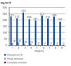 Throughout the study period, 13 patients had the following mean blood pressure values: 77±5mm Hg for total response, 74±5mm Hg for partial response, and 77±5mm Hg for no response. Serum creatinine values were: 0.8±0.1mg/dl for total response, 0.9±0.2mg/dl for partial response, and 0.8±0.1mg/dl for no response.