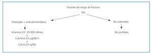 Figura 3. Algoritmo de tratamiento de pérdida de masa ósea en pacientes con trasplante renal con riesgo de fractura