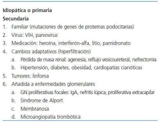 Tabla 1. Causas de glomeruloesclerosis focal y segmentaria