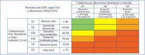 La nueva clasificación pronóstica de la ERC propuesta por la KDIGO18 se basa en estadios de FG y albuminuria (figura 1).