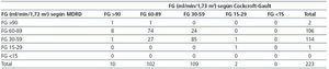 Tabla 2. Distribución de la población de estudio según los valores de filtrado glomerular (FG) al inicio del estudio estimados con las fórmulas de MDRD y Cockcroft-Gault