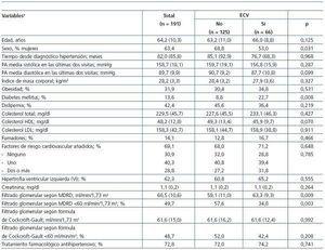 Tabla 3. Características al inicio del estudio de los pacientes que completaron el seguimiento (n = 191) según la aparición o no de eventos cardiovasculares (ECV) durante el mismo