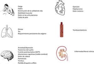 El SARS-CoV-2, el patógeno responsable de la enfermedad por coronavirus 2019 (COVID-19), ha causado morbilidad y mortalidad a una escala sin precedentes en todo el mundo1. Los datos epidemiológicos y clínicos de esta enfermedad en España han sido ampliamente comentados en publicaciones de la Sociedad Española de Nefrología2–11. En general, la mayoría de los pacientes muestra una recuperación completa dentro de las tres a cuatro semanas posteriores a la infección, pero en algunos persisten síntomas después de haberse «recuperado» de la infección inicial por coronavirus.