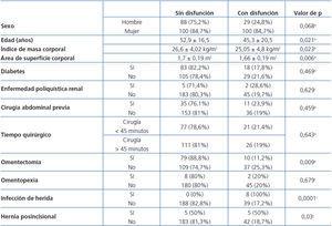 Tabla 1. Comparación de pacientes con disfunción del catéter de diálisis peritoneal y sin ella