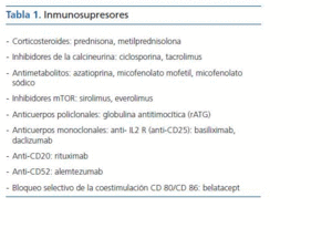 Los inmunosupresores utilizados actualmente se muestran en la tabla 1.