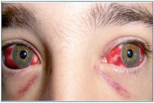 Figura 2. Hemorragia conjuntival aparecida al segundo día de ingreso