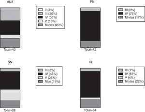 Entre los 26 con SN, 12 fueron de clase IV, 7 clase V, 5 lesiones mixtas y 2 de clase III.
