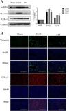 Losartan can ameliorate renal fibrosis in UUO rats. (A) Western blotting analysis using antibodies α-SMA, Vimentin and COL-1 against to examine renal fibrosis. (B) Immunofluorescence staining using antibodies against Vimentin and COL-1 to examine renal fibrosis. The data are presented as the mean±SD, *P<0.05 vs. the Sham group, #P<0.05 vs. the UUO group.