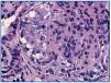 Figura 1. Seudosemilunas: hipertrofia e hiperplasia del epitelio visceral. PAS 40x.