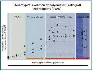 Figura 4. Fases evolutivas de la nefropatía por poliomavirus BK.