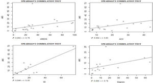 All meta-analyses and forest plots were performed in Microsoft Excel, following the step-by-step proposed by Neyeloff et al.14 The studies heterogeneity was assessed by Higgins inconsistency test (I2)15 and those with I2>50% were analyzed by random-effect model. The correlation tests were performed at software R, version 3.5.0. To perform the analyses, first, the data distribution was assessed (by the Shapiro–Wilk test) and, having found the absence of normality, Spearman correlation tests were applied. Statistically significant correlation was considered when the test p-value was<0.05.