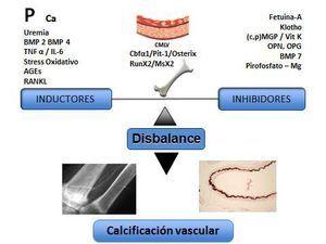 Figura 3. Proceso de calcificación vascular: desequilibrio entre inductores e inhibidores