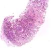 Hematoxylin–eosin stain – 4×. In the sample, 10 glomeruli were identified, 4 of them with global sclerosis (40%) and 1 with segmental sclerosis of a non-specific pattern. The evaluable glomeruli present open capillary loops, preserved mesangial matrix, marked podocyte activation, one with hyalinosis and segmental sclerosis, another with periglomerular fibrosis; without significant alterations in the glomerular basement membrane with the special stains. Casts of brown granular and intracytoplasmic epithelial material predominant in proximal tubules. Signs of acute tubular damage with loss of the brush border, luminal dilation, thinning of the lining epithelium, peeling of cells towards the lumen, in 50% of the sample. Interstitial fibrosis and tubular atrophy, moderate arteries, arterioles and peritubular capillaries, without obvious alterations.