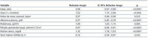 Tabla 3. Parámetros incluidos en la mejor ecuación predictiva sobre la progresión de la ERC estimada mediante regresión de Cox