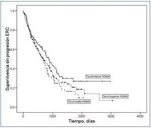 Figura 1. Curvas de Kaplan-Meier de supervivencia sin criterios de progresión de la ERC según terciles de HOMA.