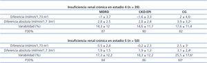 Tabla 3. Estudios de concordancia en función del grado de la insuficiencia renal crónica