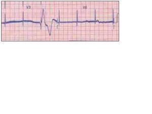 Mujer de 71 años, con DM, prótesis mitral por estenosis, insuficiencia tricúspide severa, FA lenta, marcapasos e hipertensión pulmonar. Ingresada por cuadro de IC congestiva, recibió tratamiento con furosemida, espironolactona y captopril. Durante el ingreso presentó diarrea, seguida de cuadro sincopal y bradicardia extrema. En el ECG, que mostramos por su valor docente intrínseco (fig. 2), fallo de captura del marcapasos y ondas T picudas. En la analítica, KP + 8,6 mEq/L. Tratada con gluconato cálcico iv, insulina y suero glucosado, recuperó la actividad miocárdica, pero persistiendo un equilibrio patológico del potasio (K+ p/o = 7/14 mEq/L) tras 12 h de tratamiento. Con este fin, se agregaron ACZ y bicarbonato sódico 1M a dosis puntuales, consiguiéndose un cambio en el manejo del K (K+ p/o = 4,1/54 mEq/L) en las 24 horas posteriores.